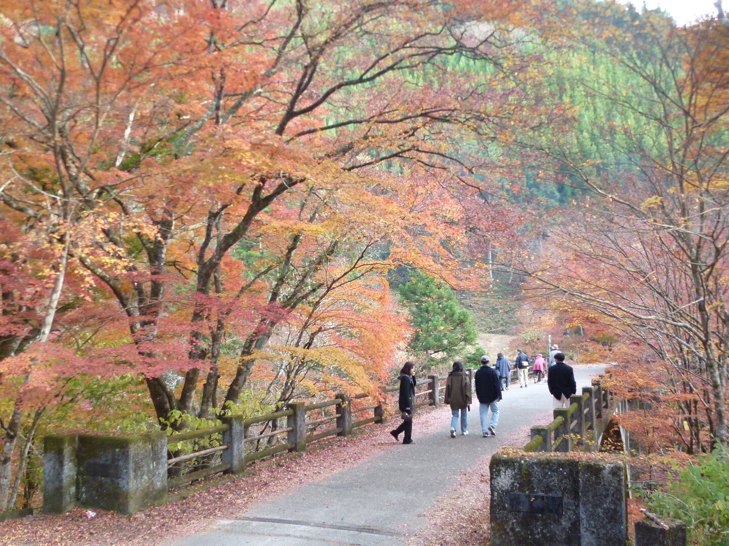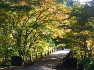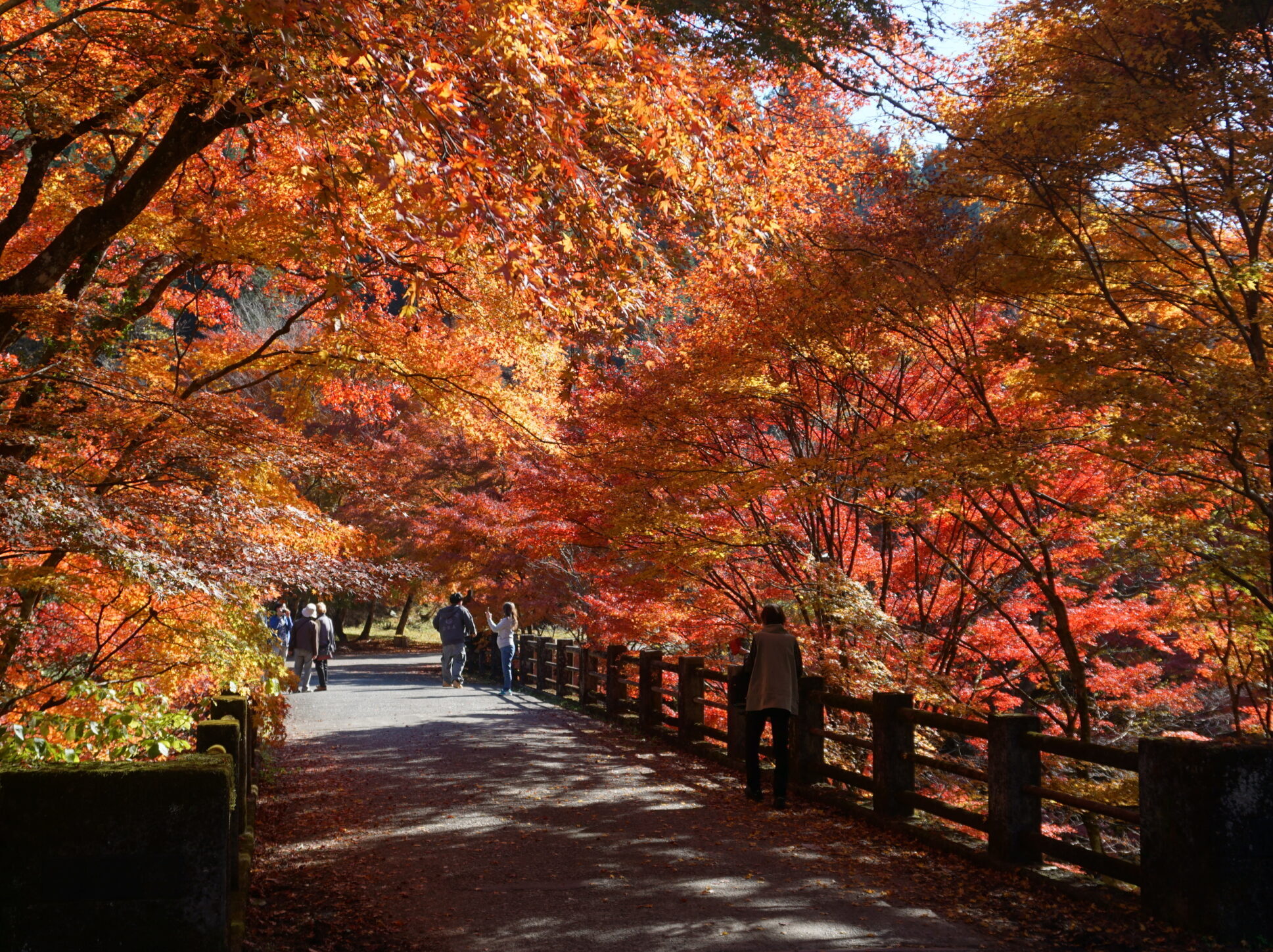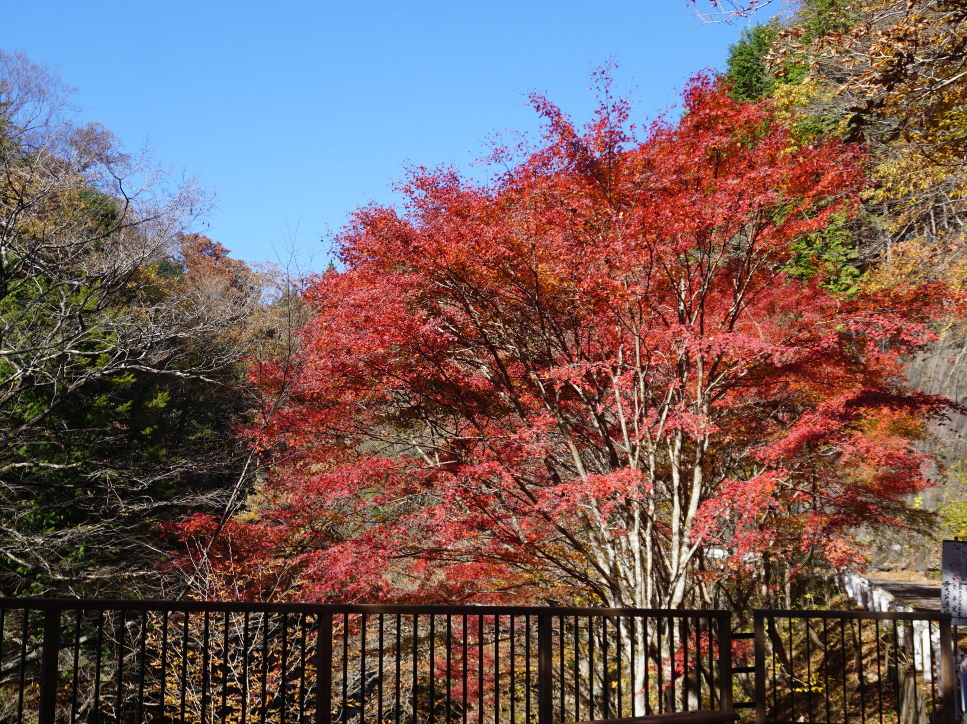 白井平橋:大もみじの他、赤や黄、緑色のグラデーションをお楽しみください。