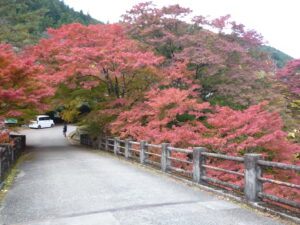 大芦渓谷の色づきは、昨年とほぼ同じペース。白井平橋の大もみじはあと1週間から10日ほどで見頃となるでしょう。