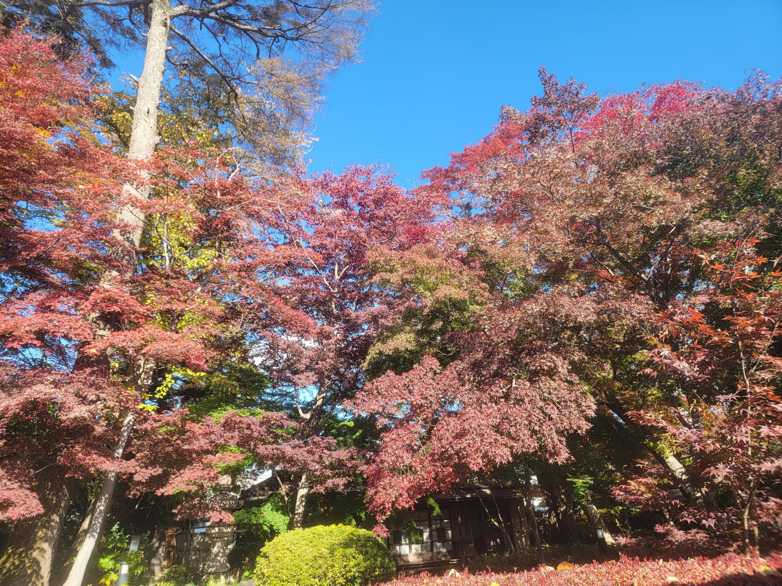 [入口左側]慶雲郷前のもみじは発色良く、見頃が続いています。