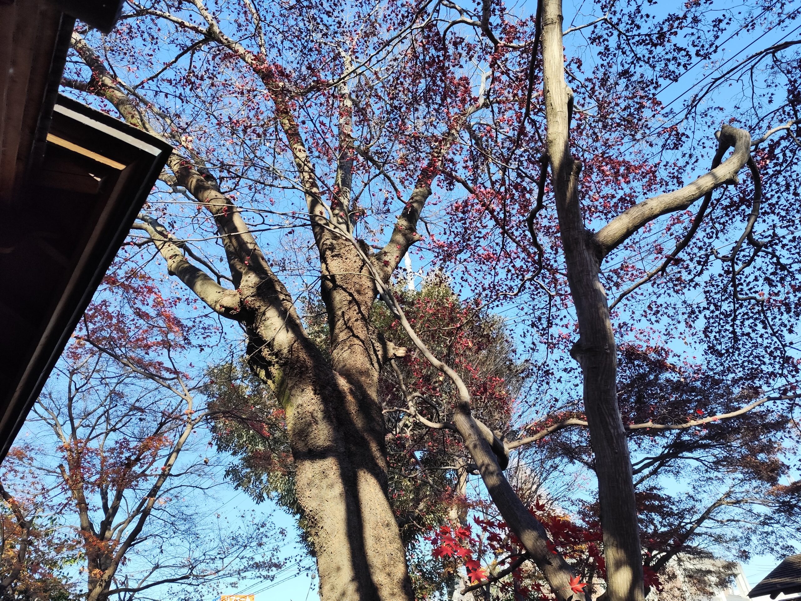 慶雲郷前のもみじは落葉または色が褪めてきています。