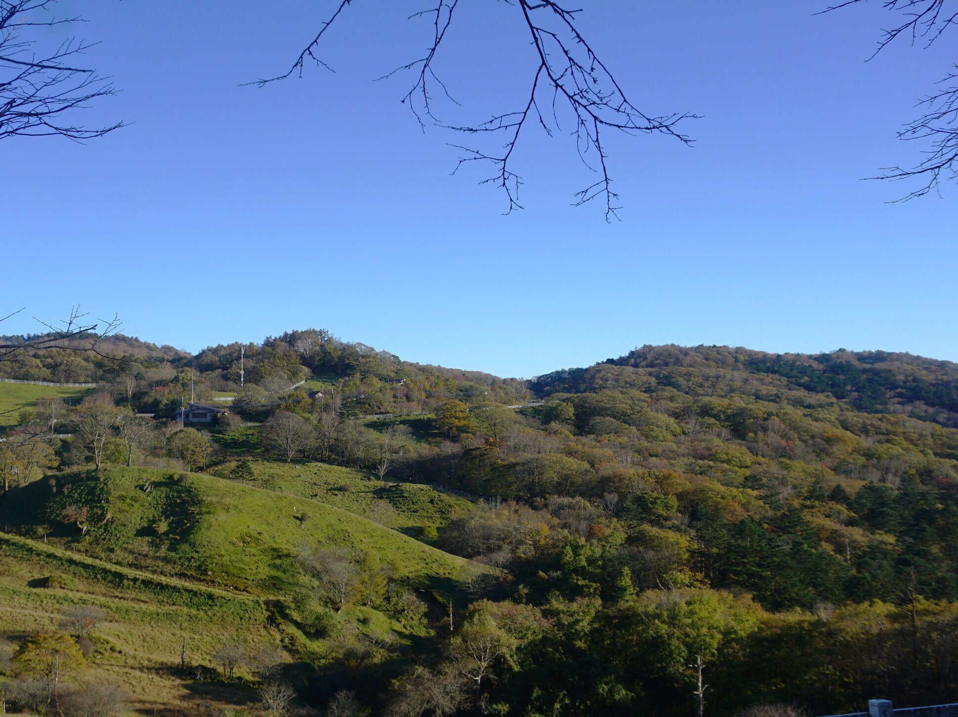 高原からのぞく山々は落葉しました。