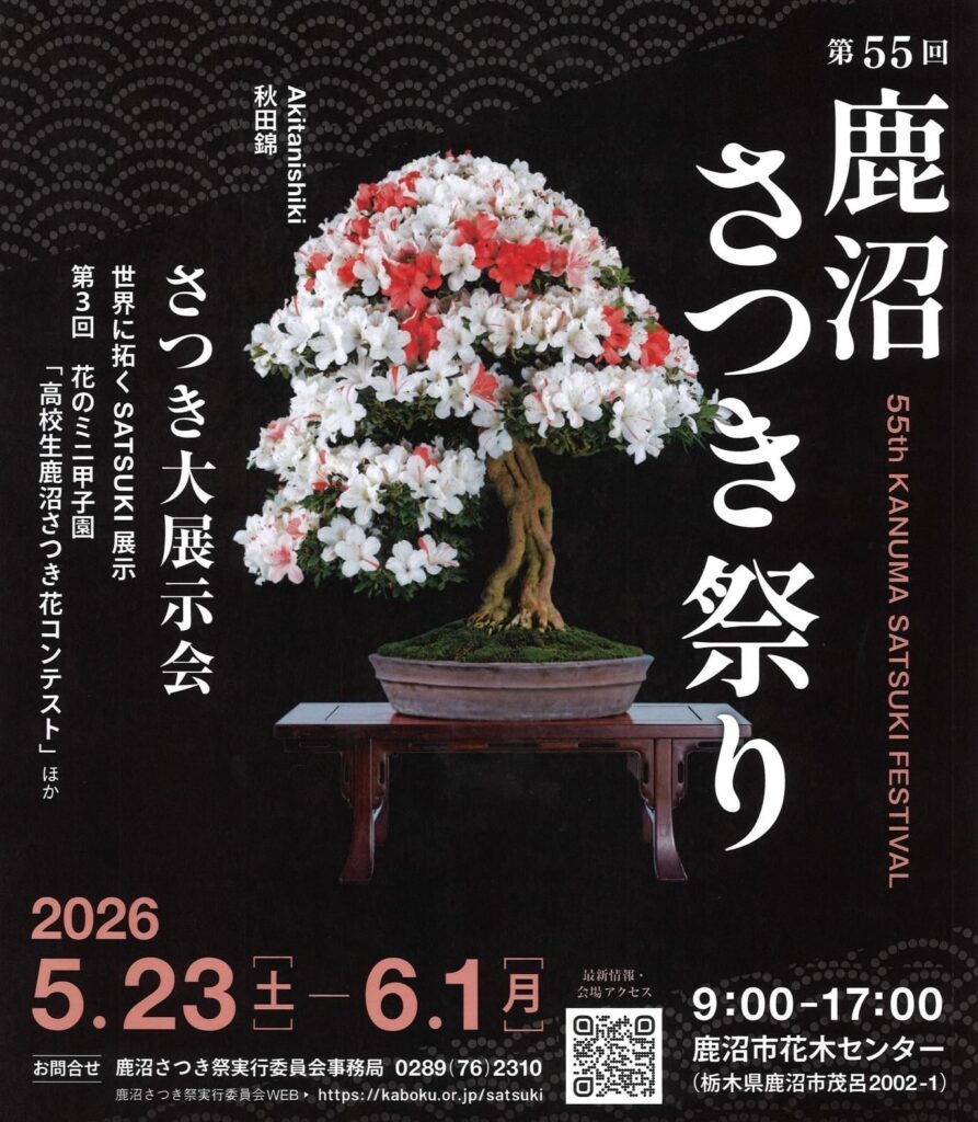 5月23日から6月1日まで、鹿沼市花木センターにおいて鹿沼さつき祭りが開催されます。海外のさつき愛好家による作品を展示する「世界に拓くSATSUKI展示」や、さつきの相談会など、さつきや園芸に関するイベントが盛りだくさんです。期間中には市内特産品の紹介や飲食ブースが揃う観光物産展も企画されています。最大級のさつきのイベントにぜひお越しください。