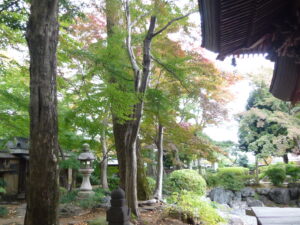 [入口左手]慶雲郷前のもみじも引き続き見頃です。イチョウの葉が落下盛んです。